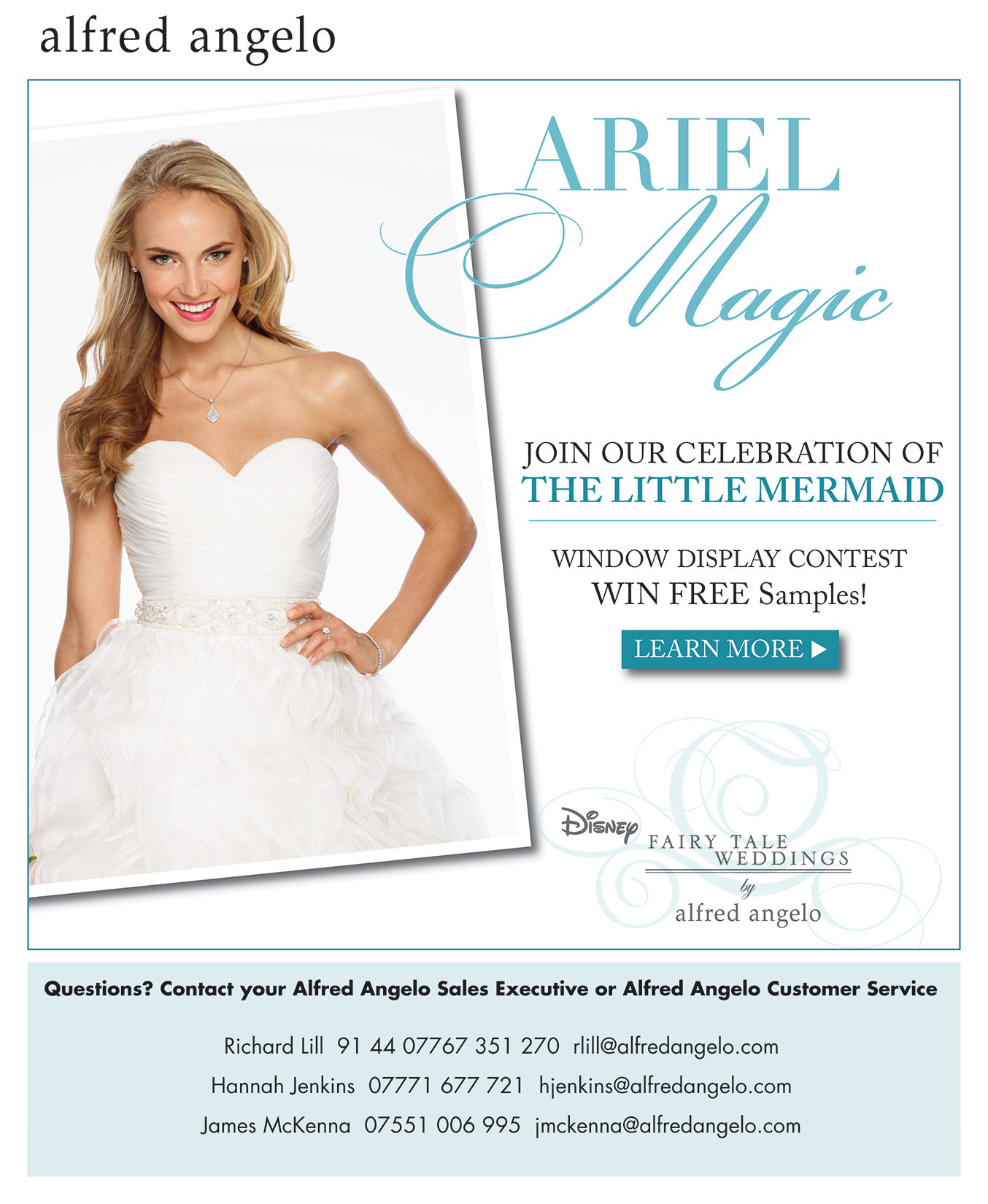 Alfred Angelo BridalMagazine layout and email campaigns More Portfolio Projects Alfred Angelo Alfred Angelo Mom Mailer View more Alfred Angelo / Undercover Boss Undercover Boss Pink Undercover Boss Marketing View more Alfred Angelo / Undercover Boss Undercover Boss – Alfred Angelo Undercover Boss Marketing Material View more Alfred Angelo Alfred Angelo Sketch Events Alfred Angelo Sketch Event View more Alfred Angelo / Disney Alfred Angelo and Disney Ariel Campaign View more Alfred Angelo / Disney Disney Bridal with Alfred Angelo View more